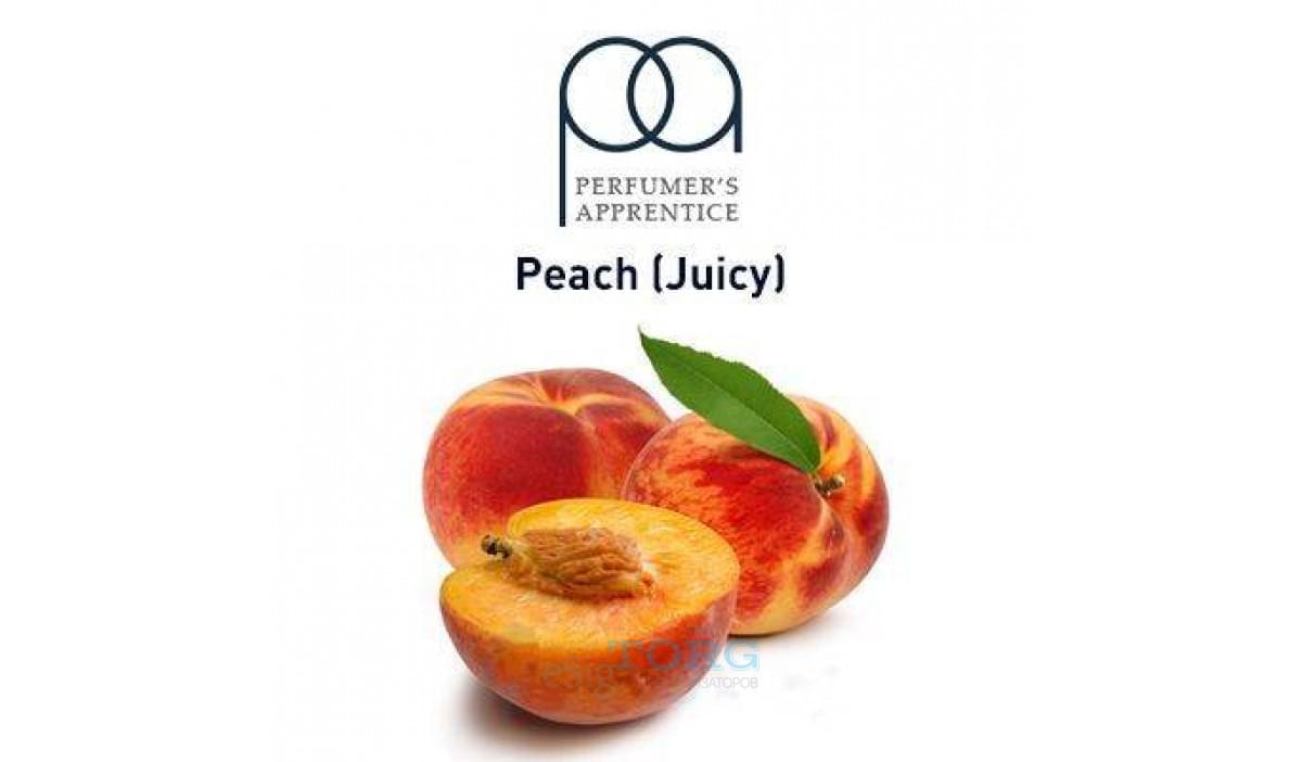 В линейке вкусов Perfumer's Apprentice есть два вида персика, один из которых — Peach (Juicy). По заверениям производителя, это более спелый вкус. В любом случае, стоит попробовать обе разновидности, чтобы определиться, какая из них больше подходит вам для смешивания. В составе продукта, наряду с ароматическими эссенциями, присутствует этиловый спирт. Рекомендуется начинать с дозировки в 9% в соло и до 5% в рецептах.